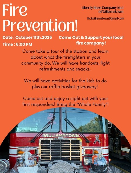 Community Event Alert Fire Prevention at Liberty Hose Company # 1 in Williamstown
